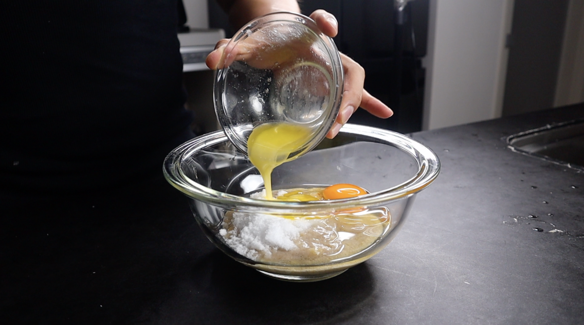 グルテンは混ぜすぎることによって発生するのでホットケーキミックスを加えたら粉気が無くなるまでさっくり混ぜること