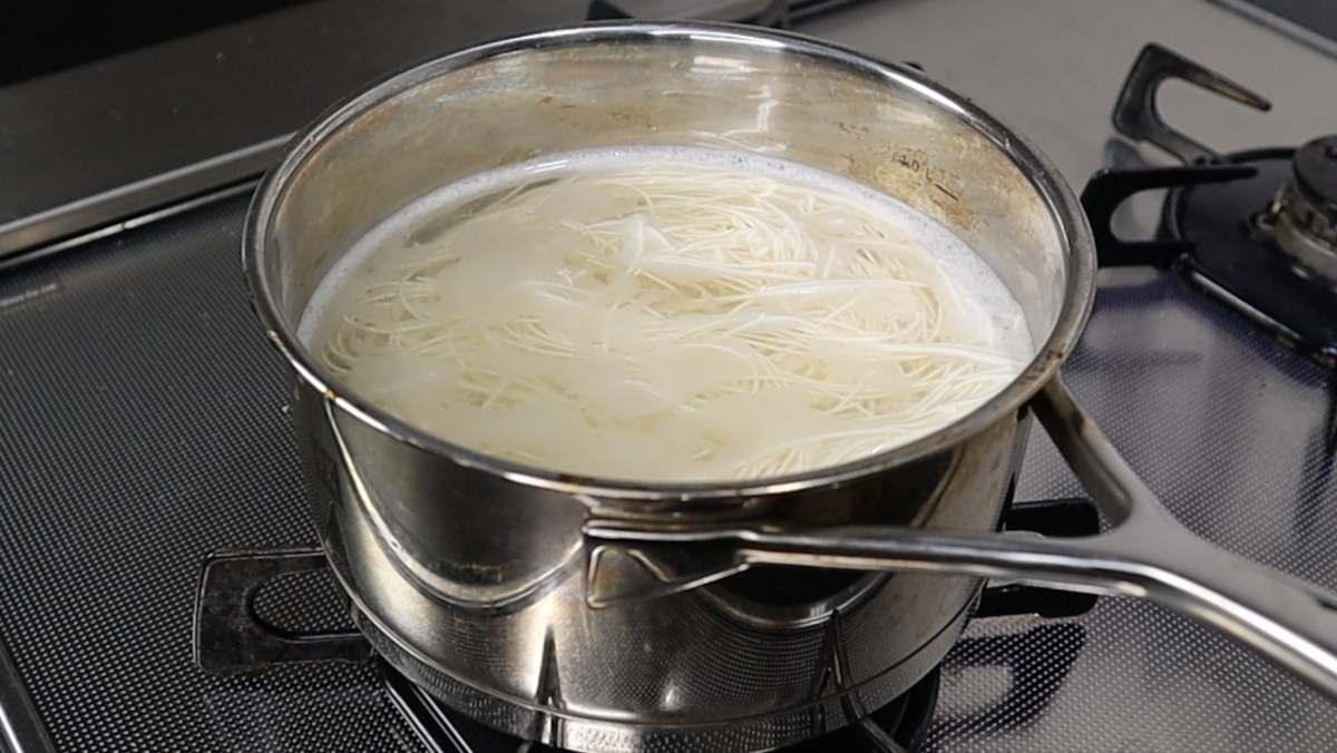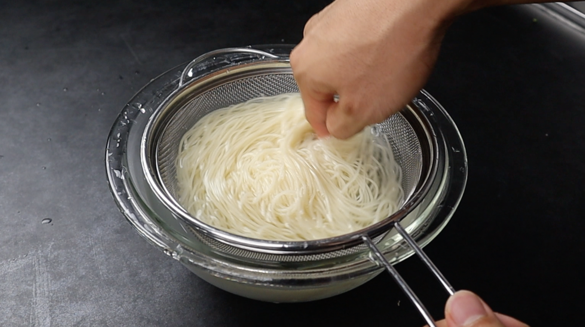 氷水で締める前にしっかりお水で揉み洗いすることでそうめん特有の匂いとぬめりを取り、より美味しく頂けます!
