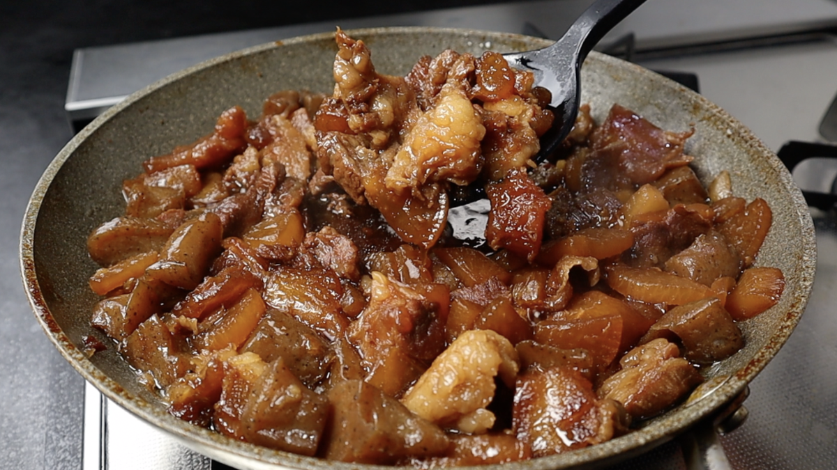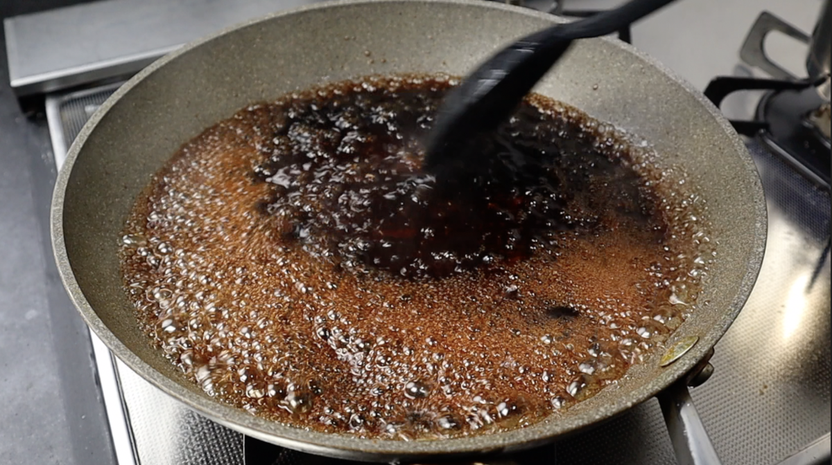 砂糖を焦がしてカラメルを作ることでカラメル特有の香ばしさやコクが加わり、何時間もかけて煮込んだかのような奥深い牛すじ大根に!