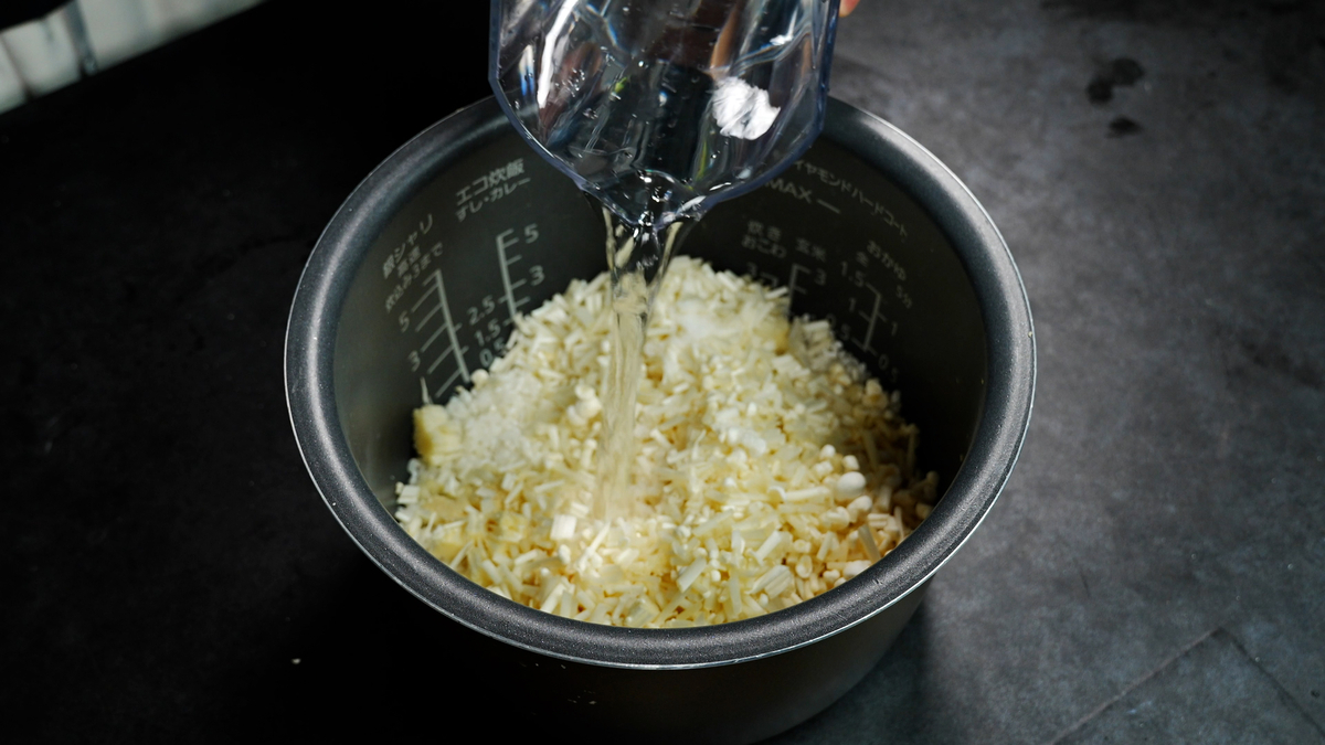 エノキからも水分が出るので必ず水分量は指定の量(少なめに)入れて下さい